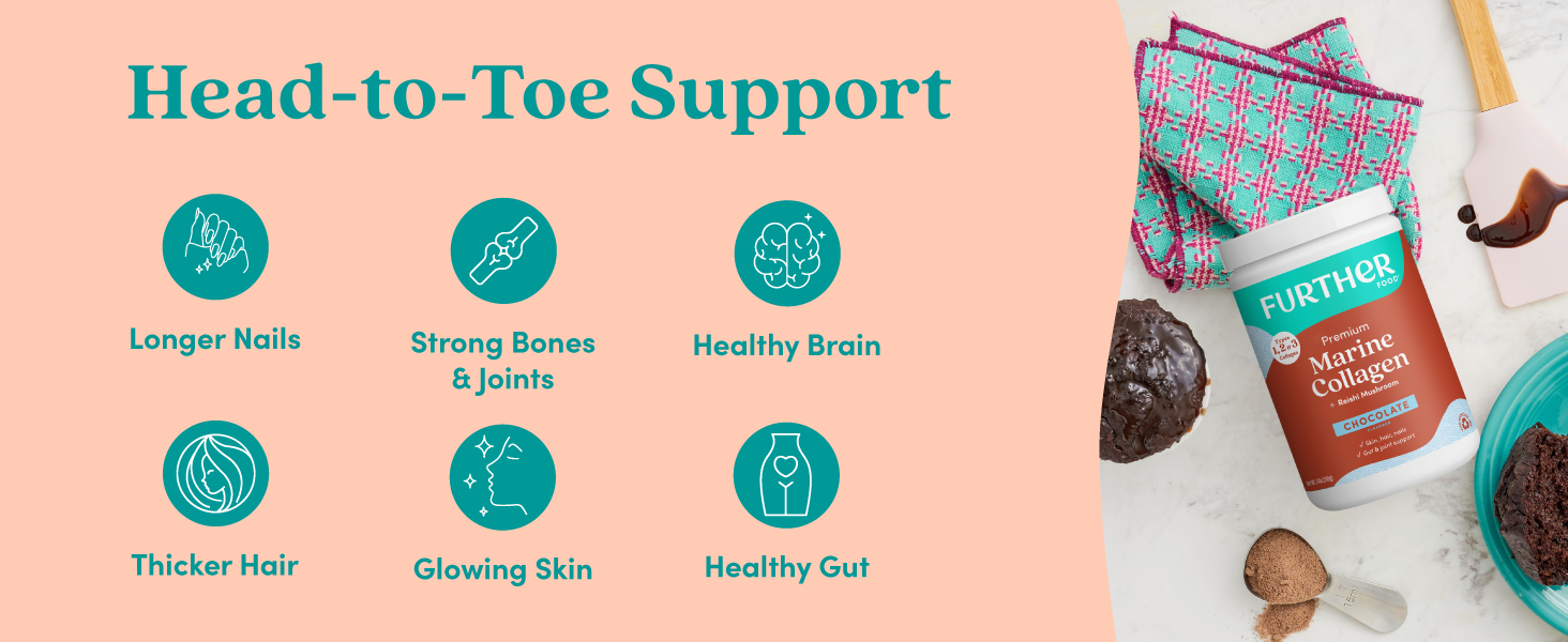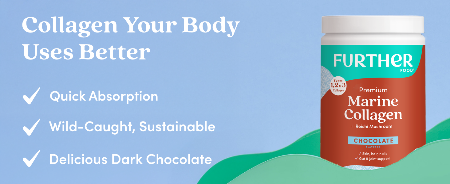 A premium blend of our most bioavailable marine collagen, mood-boosting reishi mushroom and delicious dark chocolate. This Chocolate Marine Collagen of your dreams revitalizes skin, hair, and nails while improving joint and gut health.