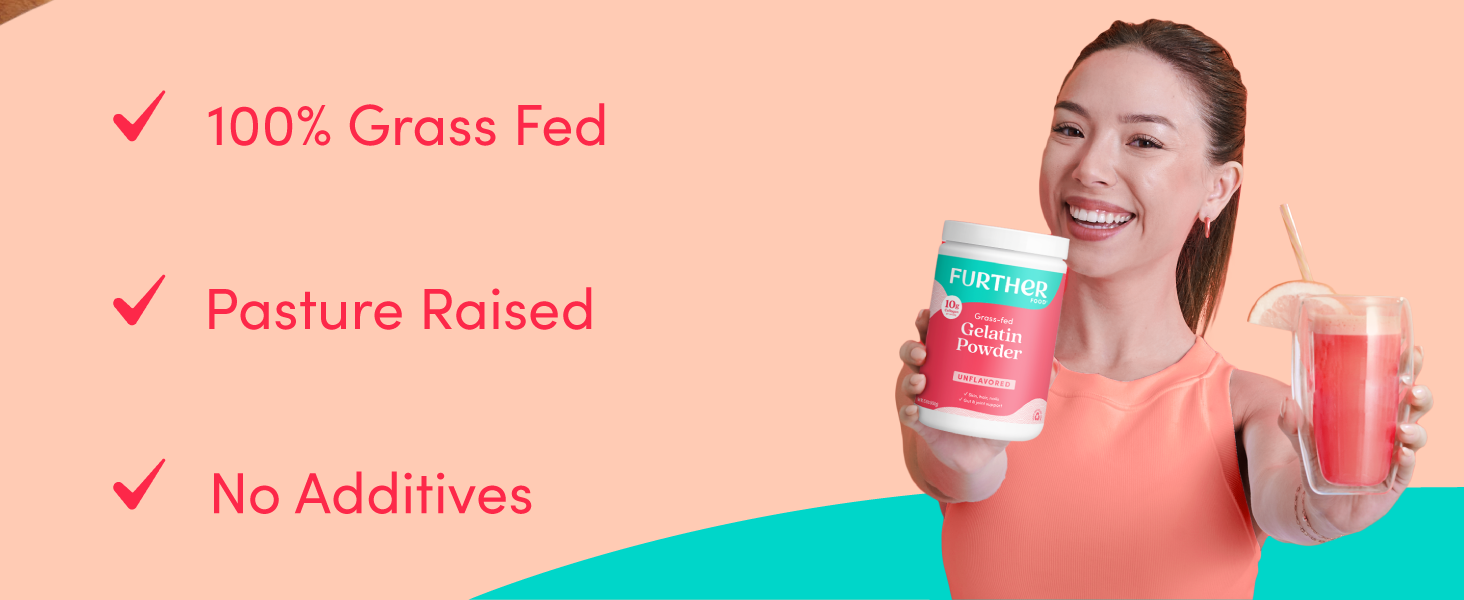 Grass-fed, pasture-raised premium beef hide gelatin. Flavorless and naturally thickens your cooking and baking recipes. Daily use can help to reduce wrinkles, increase skin elasticity and hydration, strengthen hair and nails, while also supporting bone, joint and gut health.