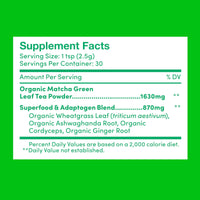 A delicious combination of organic Japanese matcha, powerful superfoods, organic cordyceps mushrooms and ashwagandha makes the perfect matcha latte or tea for all day energy that gives your metabolism a boost.
